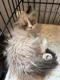 Atlas had lost an incredible amount of weight and was matted to point that he had to be shaved. He was considered one of the cats in a better condition. He is scheduled for his neuter and vaccinations on December 30, 2024 and will be available for adoption.