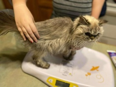 According to records found at the breeder’s house and website, Melody was listed as a female long legged Minuet. She was born on April 22, 2019 and is a seal lynx point.